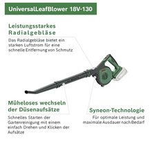 - Im Lieferumfang enthaltenUniversalLeafBlower 18V-130