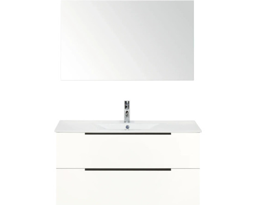 Badmöbel-Set Sanox Seville 170x100x46 cm weiß hochglanz mit Keramikwaschbecken und Spiegel