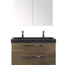 Badmöbel-Set Sanox Seville Naturstein 170x101x45,5 cm Doppelwaschbecken tabacco mit Spiegelschrank