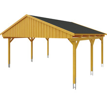 Doppelcarport SKAN Holz Fichtelberg inkl. Dachschindeln schwarz 618 x 566 cm Eiche hell