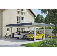 Doppelcarport SKAN HOLZ Wendland schwarze Blende inkl. EPDM Folie, Pfostenanker 630 x 637 cm weiß