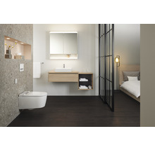 Dank der Oszillierdusche mit einstellbarer Vor- und Rückwärtsbewegung des Duscharms wird die Reinigung noch gründlicher. Der WC-Sitz verfügt über eine Absenkautomatik, die ein geräuschloses Schließen ermöglicht. Die Befestigung des WC-Sitzes ist von oben unsichtbar.