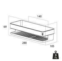 Darum solltest Du zugreifen: Der Duschkorb aus der Serie Carv ist ideal für die Wandmontage in Deinem Bad und bietet Dir zwei Befestigungsmöglichkeiten - Du kannst ihn entweder schrauben oder kleben. Das Montagematerial zum Bohren ist bereits dabei. Mit seiner Breite von 28 cm, einer Höhe von 6,9 cm und einer Tiefe von 10,5 cm bietet der Duschkorb ausreichend Platz für Deine Duschutensilien und sorgt so für mehr Ordnung und Platz in Deiner Dusche. Gefertigt aus Edelstahl und ABS-Kunststoff, ist er besonders robust und langlebig. Die schwarze Farbe und die glänzende Oberfläche verleihen Deinem Bad zusätzlich ein modernes Aussehen.