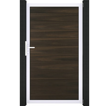 Einzeltor GroJa Flex vormontiert ohne Pfosten Rahmen silber 100 x 180 cm walnuss