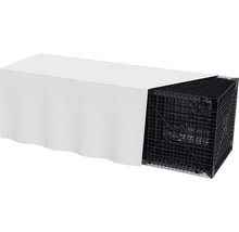 Das Erweiterungsset Versickerung 410 l eignet sich für die Rückhaltung, Versickerung und Entwässerung von Regenwasser und behandeltem Abwasser. Der Zulauf in den Sickerspeicher kann per DN 110 oder DN 160 realisiert werden (kann individuell vor Ort entschieden werden). Die Sickerelemente können aneinander gereiht werden und sind zum Schutz vor eindringendem Erdreich mit Geotextil einzuschlagen. Der Sickerspeicher 205 l ist ein montagefreundlicher Bausatz und besteht aus 6 Seitenflächen inklusive angeformten Montagepins.
