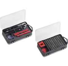 - Set bestehend aus1 x Bit-Schrauber, 1 x Bithalter magnetisch, 1 x Flexible Verlängerung, 1 x Pinzette, 1 x Magnetisierer, 1 x Saugnapf, 1 x Dreikant-Plektrum, 1 x Simslot-Pin, 2 x Geräteöffner, 8 x Mini-Stecknüsse, 90 x Präzisionsbit