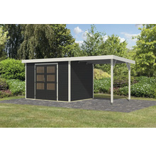 Gartenhaus Karibu Metalwood 4C Blech weiß inkl. Anbaudach 2,35 m 541,5 x 236,5 cm anthrazit