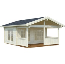 Palmako Ferienhaus Agneta 18,8 + 12,5 m² mit der naturbelassenen Oberfläche besticht durch schlichte Eleganz. Das aus 70 mm starken Blockbohlen gefertigte Haus ist eine hervorragende Location für rauschende Garten-Feten und wunderbar geeignet als lauschiges Wochenend-Domizil. Der im Lieferumfang enthaltene Fußboden ist robust und strapazierfähig. Öffnen Sie bei schönem Wetter die mit Isolierglas versehene Doppeltür sowie die Fenster und lassen Sie den Sommer ins Haus oder geniessen Sie die Abendstunden auf der geräumigen Terrasse. Die Tür besteht zudem aus einem geleimten Rahmen und selbst an die Sicherheit haben wir gedacht, denn im Lieferumfang enthalten sind ein PZ-Schloss, der Schliesszylinder sowie eine Drückgarnitur. Sie werden staunen wie viel Platz Agneta auf einer Grundfläche von 486 x 386 cm bietet. Die Terrasse kommt mit 250 x 500 cm noch dazu. Inklusive Dachüberstand beträgt die gesamte Dachfläche 47,3 m², die mit 19 mm starken Nut- und Federdielen versehen wird. Agneta hat eine Firsthöhe von 357 cm und eine Traufenhöhe von 250 cm. Optional können Sie das Haus mit Dachpappe und Schindeln versehen.