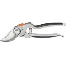 Die leistungsstarke und robuste Alu-Gartenschere B+/L von GARDENA ist mit einem 25 mm großen Schneid-Durchmesser für anspruchsvolle Schneidarbeiten geeignet. Sie schneidet zuverlässig stärkere Äste und Zweige mit größerem Durchmesser in frischem Holz. Die Schere besteht aus hochwertigen Materialien. Dazu gehören die robusten ErgoTec-Griffe aus Aluminium: Sie bieten nicht nur eine gelungene Ergonomie, sondern verhindern auch ein Abrutschen der Hand dank eingebauter Weichkomponenten. Das Edelstahl-Obermesser und das geschmiedete Untermesser der Gartenschere schneiden im Bypass-Schneidprinzip. Das geschmiedete Untermesser ist extra stark und lässt sich bei Bedarf nachschärfen. Das einstellbare Gewerbe zur Nachjustierung trägt zu dauerhaft sauberen, pflanzenschonenden und exakten Schnitten bei. Zusätzlich lassen sich die Klingen austauschen. Der praktische Einhand-Sicherheitsverschluss dient zum einfachen Verschließen der Schere, sodass sie nach der Gartenarbeit sicher verstaut werden kann. Die Alu-Gartenschere B+/L ist ein Qualitätsprodukt Made in Germany, auf das GARDENA eine 25 Jahre lange Herstellergarantie gewährleistet.