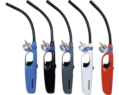 Gasanzünder Maxi mit Piezozündung. Ideal geeignet zum Anzünden von Kerzen in hohen Glasständern und Windlichtern, Fonduebrennern, Kaminen, Öfen, Gasheizstrahlern und Grills. Turboflamme, die Flammenhöhe ist regulierbar. Der Anzünder ist nachfüllbar mit normalem Feuerzeuggas. Mit Gaskontrollfenster, Kindersicherung und Aufhängung. Zudem verfügt der Gasanzünder über einen flexiblen Metallschaft, dadurch ist das Anzünden von schwer erreichbaren Stellen möglich. Länge 34,5 cm.