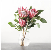 Darum solltest Du zugreifen: Das Glasbild von Pure Living besticht durch seine minimalistische Gestaltung und die ruhige, elegante Ausstrahlung. Die drei rosa Protea-Blüten mit grünen Blättern sind in einem schlichten Glasgefäß arrangiert, was dem Bild eine klare und beruhigende Komposition verleiht. Mit den Maßen von 30x30 cm ist es ideal für verschiedene Räume wie Esszimmer, Flur, Schlafzimmer, Treppenhaus und Wohnzimmer geeignet. Das quadratische Format fügt sich harmonisch in jede Umgebung ein und das Gewicht von 0,9 kg ermöglicht eine einfache Montage. Die reduzierte Farbpalette sorgt dafür, dass das Bild in nahezu jedes Interieur passt und einen stilvollen Akzent setzt.