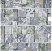 Glasmosaik mit Naturstein XCM MC609 30,0x30,0 cm grau