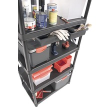 Ein Hochstapler mit Ordnungssinn! Das Kunststoffregal bietet Ihnen auf fünf Böden reichlich Platz zum ordentlichen Verstauen.