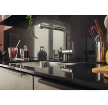 Minimalistisches Design. PVD steel - reinigungsfreundlich und hohe Verschleißfestigkeit. Herausziehbarer Auslauf. Hochwertige Metallausführung der Brause. Hoher Auslauf für leichtes Befüllen von Töpfen und Vasen.
