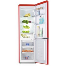 Die im roten Vintage-Look gehaltene Kühl-Gefrierkombination KG250.4RT FR von Wolkenstein zeichnet sich durch die besonders sparsame Energieeffizienzklasse E aus und stört Sie mit einer Geräuschemission von 41 dB/A garantiert nicht beim morgendlichen Kaffee. Der durch LEDs beleuchtete Kühlraum mit einem Nutzvolumen von 180 Litern enthält eine Vielfalt an Optionen um Ihre Lebensmittel optimal zu lagern. Er besitzt 3 Glasablagen, eine Schublade mit bruchsicherer Glasabdeckung und 4 Türbalkone inklusive Eiereinsatz für bis zu 8 Eier. Das separate Gefrierfach umfasst 69 Liter und ist aufgeteilt in 3 Gefrierschubladen, damit Ihre Tiefkühlkost bestmöglich aufbewahrt werden kann. Die verstellbaren Füße erleichtern Ihnen die individuelle Anpassung an Ihre Räumlichkeiten. Retro-Look in Kombination mit modernster und zuverlässiger Technologie machen aus diesem Kühlschrank ein tägliches Vergnügen.