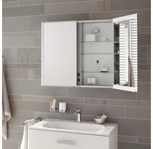 - Produktdetails: Beidseitige Spiegeltüren, 6 Einlegeböden, Lichtschalter aussen, Steckdose innen