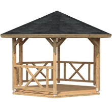 Gartenlaube Palmako Betty 9,9 m² sechseckig mit Geländer ohne Fußboden 384 x 339 cm tauchgrundiert braun