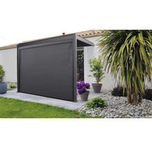 Pergola mit Lamellendach 4x3 Gestell RAL 7015 schiefergrau inkl. vertikaler Beschattung (Wandbefestigung)