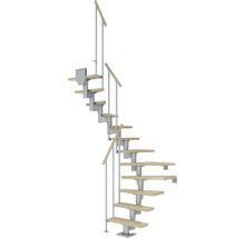 Pertura Mittelholmtreppe Spiros Perlgrau 1/2-gewendelt 65 cm Stabgeländer Ahorn Leimholz Lackiert 13 Stufen / 14 Steigungen