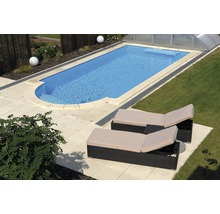 Die im warmen Farbton gehaltenen Einfassungen der Linie 'Bergerac vermitteln mediterranes Urlaubsflair. Die geraden Bergerac-Elemente eignen sich aufgrund ihrer ebenen Oberseite für die leichte Montage einer Poolabdeckung.