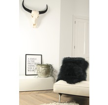 Das Schaf wurde zur Fleischerzeugung gehalten, d. h. dieses Echtfell stammt aus der Fleischproduktion, wo es sonst keine Verwendung findet, und wurde für die Dekoration weiterverarbeitet. Lüften ist für dieses Fell die beste Reinigung und Pflege.