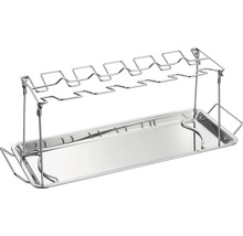 Der Tenneker® Chicken Wing Halter ist ein professionelles Grillwerkzeug, mit dem Geflügel auf dem Grill goldbraun und köstlich gegart wird. Er ist eine Variante des Braten- und Rippchenhalters und sorgt für einen sicheren Stand. Mit ca. 43,8 x 15,5 x 14 cm (L x B x H) bietet er reichlich Platz für bis zu zwölf Hähnchenflügel, die praktisch eingehangen werden, und wiegt dabei gerade mal ein halbes Kilo. Der Halter hat eine praktische Fettauffangschale und zwei Griffe, mit denen Sie die Chicken Wings bequem vom Grill nehmen können.