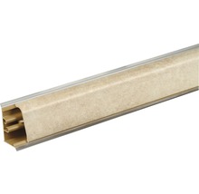 Schlanke Hohlkehlleiste für den Wandanschluss von der Küchenarbeitsplatte zur Wand mit zweiteiligem Aufbau: Montageschiene zum Befestigen an der Wand oder der Platte, Aufclipsen der dekorgleich zur Platte passenden Deckschiene. Aufgebrachte Dichtlippen verhindern ein eindringen von Feuchtigkeit hinter die Arbeitsplatte.