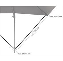 Diese Windsicherung aus robustem, schwarzem Polyesterband reduziert die Schwankbewegungen durch Wind und somit die Belastung auf das Schirmgestell. Sie kann ohne Werkzeug an allen Ampelschirmen mit einer Feststellschraube am unteren Teil des Mastes und einem maximalen Mastumfang von 260 mm montiert werden. Im Lieferumfang enthalten sind 1 x Mastbefestigung, 2 x Strebenbefestigung und 2 x Abspannbänder.Achtung: Die Ampelschirm-Windsicherung erhöht nicht die Standsicherheit Ihres Ampelschirmes. Die Standsicherheit hängt maßgeblich vom Gewicht und der Größe des verwendeten Schirmständers ab! Sie dient lediglich der Reduzierung der Bewegung des Schirmdaches sowie der Belastung des Schirmgestells. Bei aufkommendem Wind ist der Ampelschirm zu schließen.Passend für unsere Ampelschirme: Monaco 3 x 3 m, Barbados, Bermuda, Rhodos Grande, Rhodos Twist-Serie, Rhodos, Rhodos Blacklight, Rhodos Rondo, Samos, Lotus, Venus, Genua.