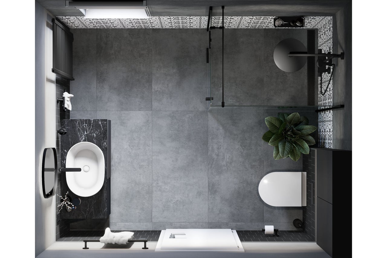 Das Duschbad des Badkonzepts ist barrierearm gestaltet. Die Dusche ist ebenerdig, damit Du einen leichteren Ein- und Ausstieg hast.