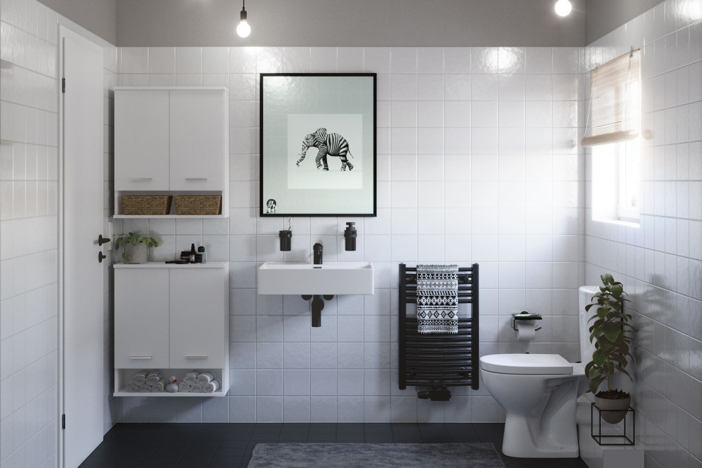 Fliesen raus und Neue rein klingt Dir zu anstrengend und aufwändig? Wir haben eine Alternative: Fliesenlack hat einen ebenso beeindruckenden Effekt auf Dein Badezimmer. Der weiße Aufsatzwaschtisch mit geradlinigem Design und die angesagten Armaturen und Badaccessoires in schwarz matt sorgen darüber hinaus für ein rundum gelungenes Bad. Das Badkonzept Kenia in den Farben Schwarz, Grau und Weiß bietet eine stilvolle und moderne Lösung für Dein Zuhause.