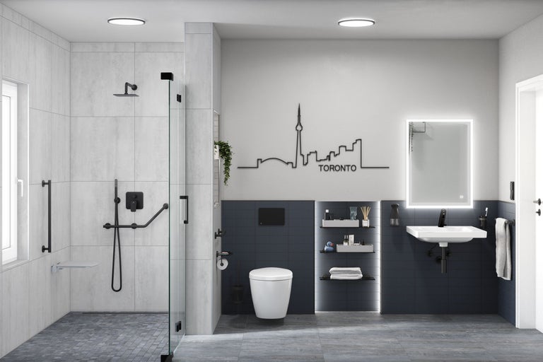 Die kanadische Metropole ist bekannt für seine konsequente Umsetzung barrierefreier Standards. Dieses Bad passt perfekt dazu, denn in der cleveren Raumaufteilung ist alles auf Komfort ausgelegt. Die Farbwahl ist so elegant und schick, wie man es aus vielen Neubauten in Toronto kennt. Unser Badkonzept zeigt, wie Barrierefreiheit und gutes Design Hand in Hand gehen.