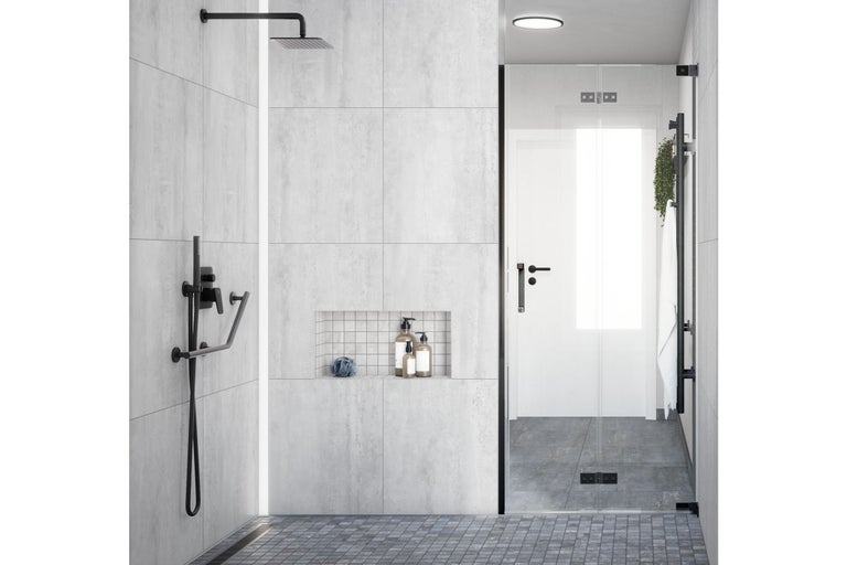 Das Duschbad des Badkonzepts ist barrierearm gestaltet. Die Dusche ist ebenerdig, damit Du einen leichteren Ein- und Ausstieg hast.