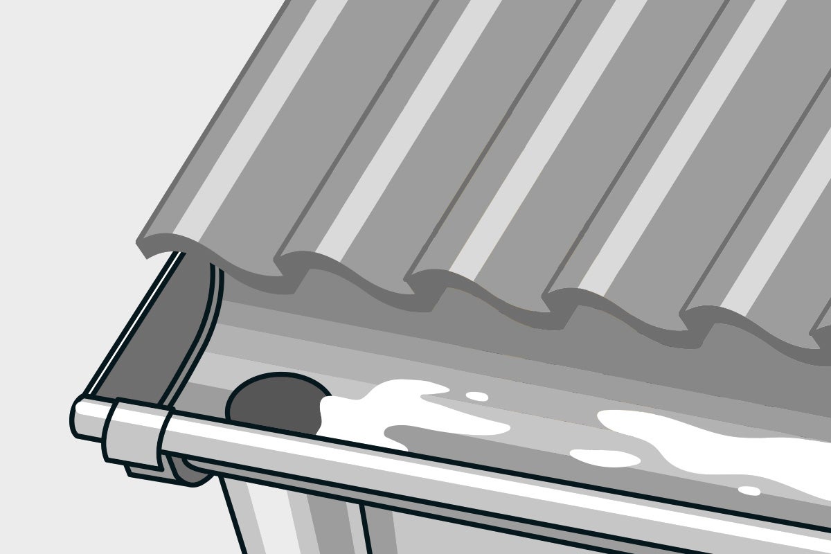 Ein Dachrinnenschutz verhindert, dass Blätter in die Dachrinne gelangen oder Vögel unter den Dachziegeln Nester bauen. Blätter, die auf den Dachrinnenabfluss fallen, trocknen von selbst und werden vom Wind weggeweht. So setzt du den Schutz ein: