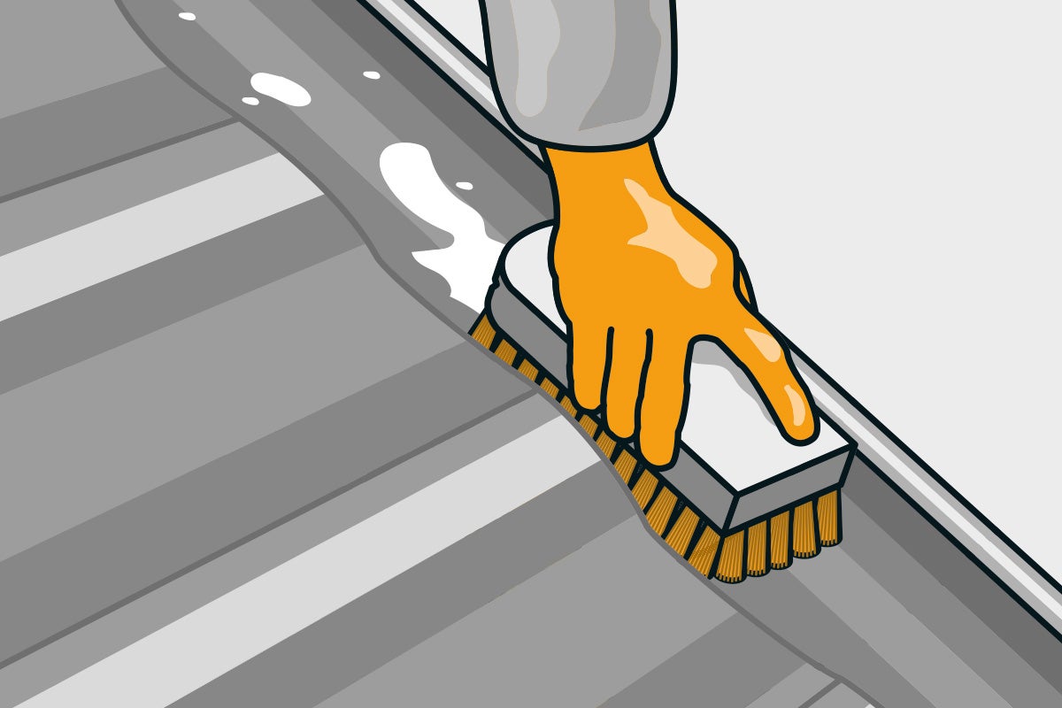 Die letzten Verschmutzungen kannst Du mit einem Eimer Wasser und einer Bürste entfernen. So kannst Du auch hartnäckige Stellen erwischen und sicherstellen, dass die Dachrinne vollständig sauber ist. Dein Projekt Dachrinne reinigen ist fertig!