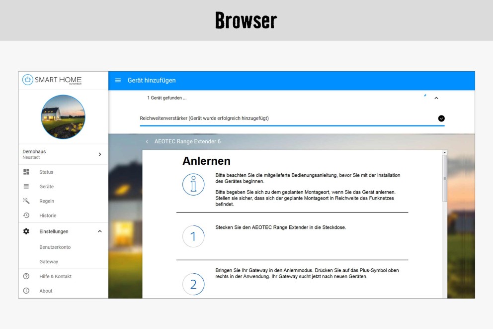 5. Folge den Anweisungen in der Anleitung. Falls Du diese bereits kennst, kannst Du das Gateway jederzeit in den Anlern-Modus umstellen, indem Du auf das Plus-Symbol klickst.