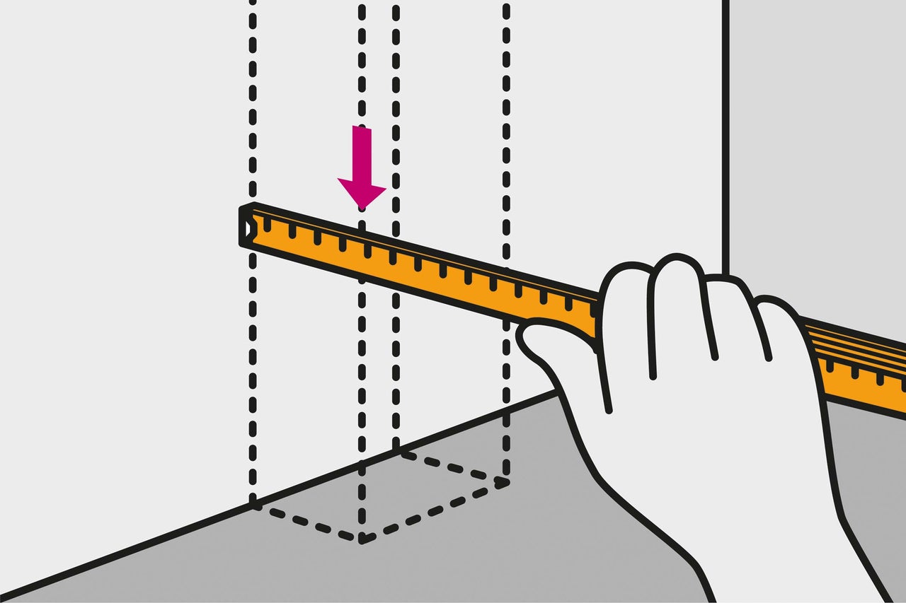 Zunächst misst und markierst Du den Abstand von der "echten" Wand bis zur geplanten Unterkonstruktion.