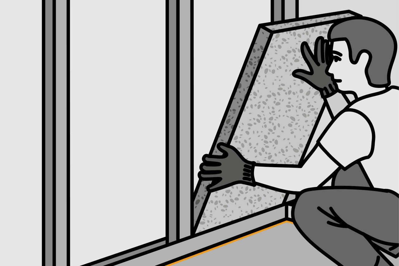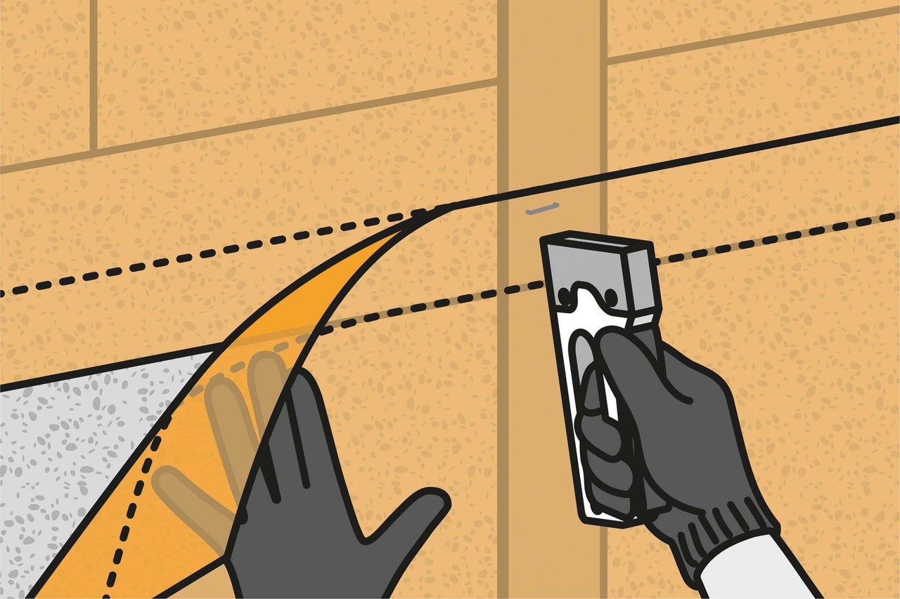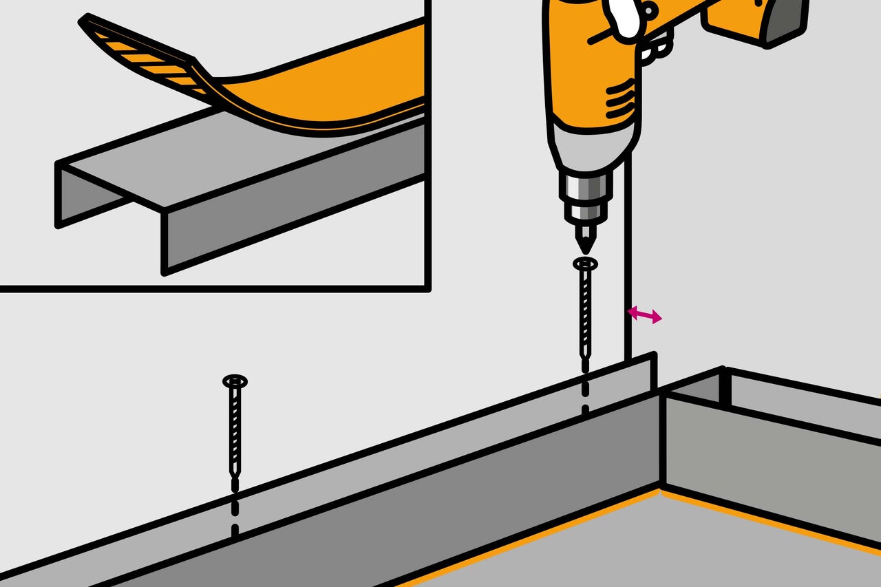 Bringe außerdem einen Dämmstreifen zur Entkopplung am Boden an.