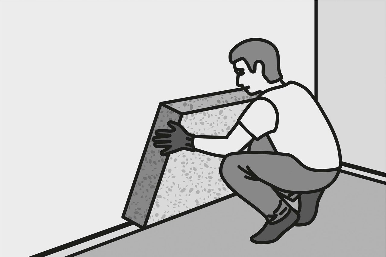 Es ist außerordentlich wichtig, dass die Dämmplatten an jeder Stelle Kontakt mit der Wand haben. Wenn sich Hohlräume zwischen Dämmplatte und Wand bilden, kann sich dort Kondenswasser sammeln und es kommt zu Schimmel.