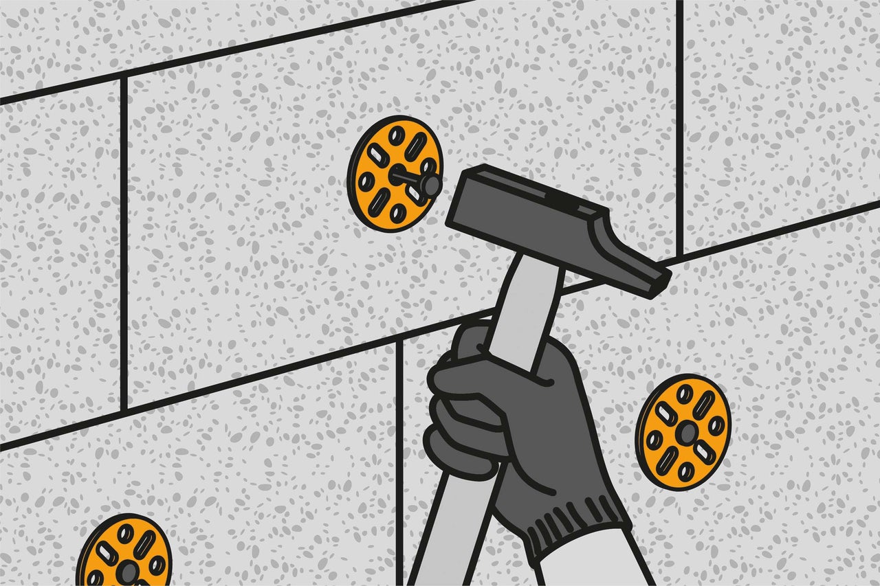 Zusätzlich zum Kleber, befestigst Du jede Dämmplatte mit einem Tellerdübel.