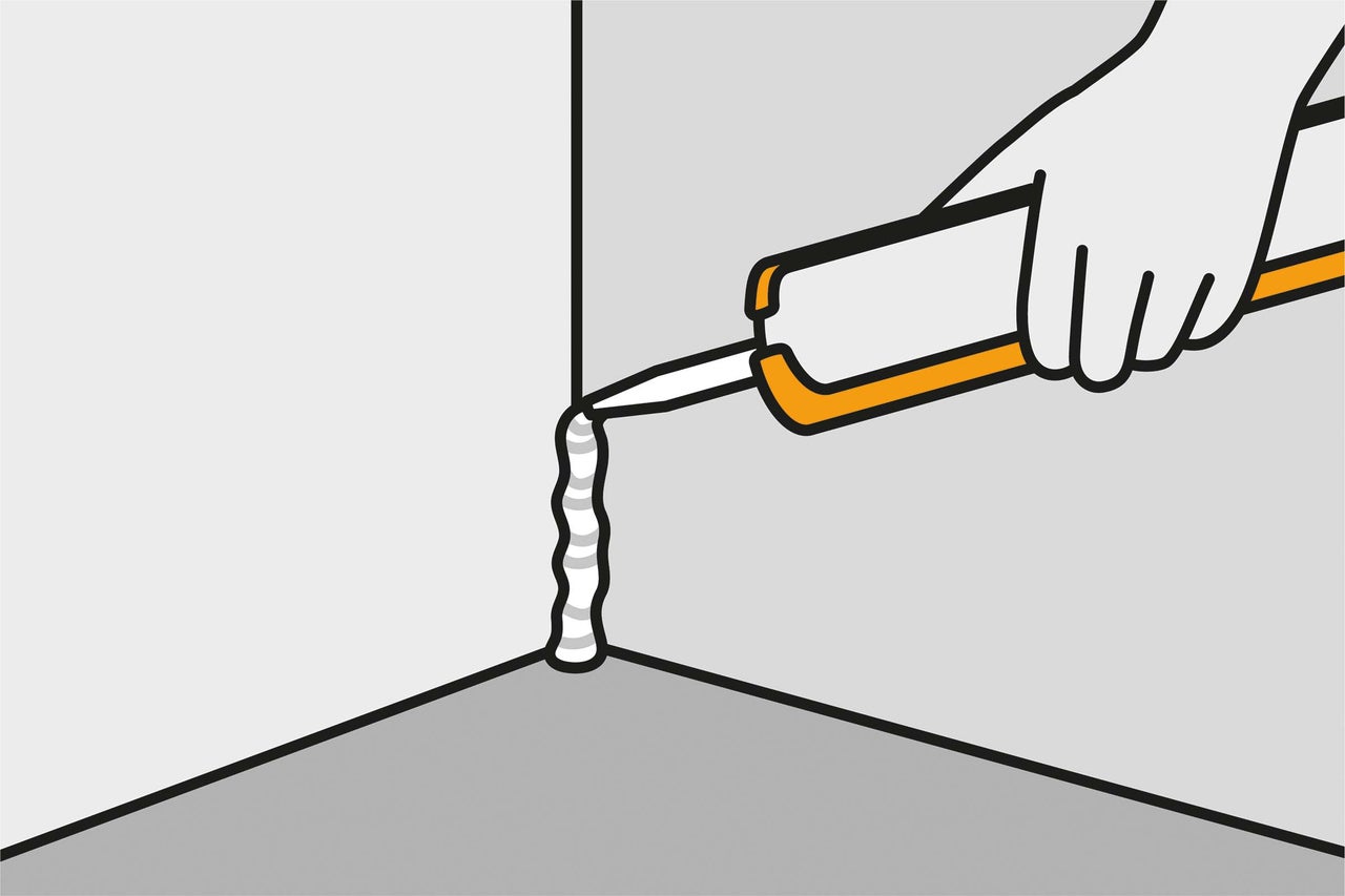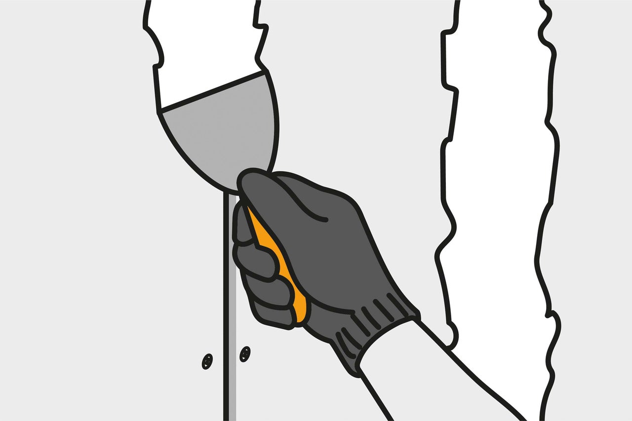 Die Fuge zwischen Deiner gedämmten Wand und einer bestehenden Wand muss ebenfalls verfugt werden. Verwende hierfür ein elastisches Fugenmaterial. So verhinderst Du, dass die Fuge reißt, wenn es zu kleinen Bewegungen im Mauerwerk kommt.