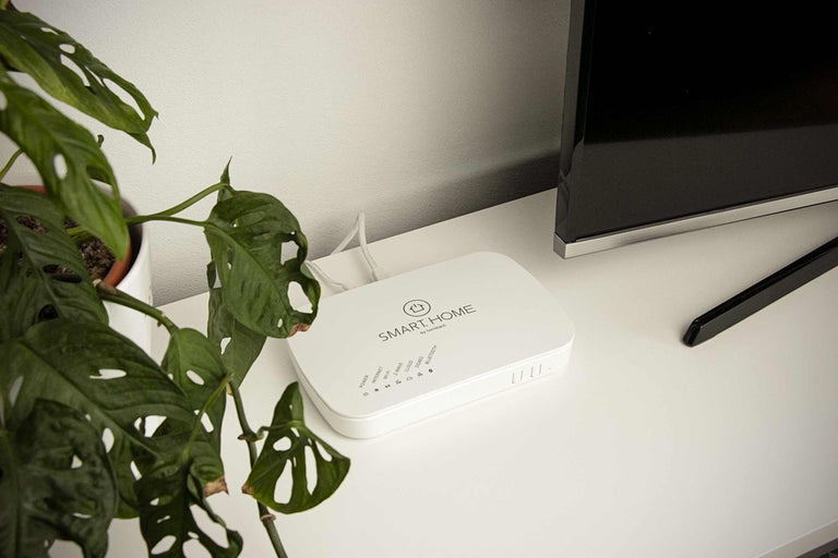 Das Starter-Kit beinhaltet das Gateway, das den Garagentorantrieb über den Router mit dem Internet verbindet.