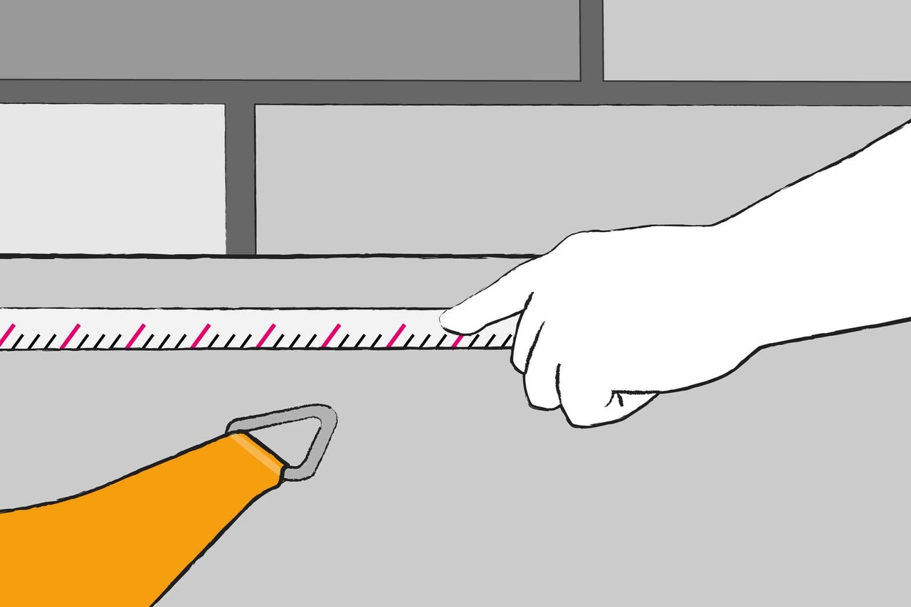 Lege fest, wo Du das Sonnensegel aufhängen willst und stelle sicher, dass die Befestigungspunkte stabil genug sind. Das kann z. B. an der Wand, an Pfosten oder Bäumen sein. Miss dann die Abstände zwischen den einzelnen Punkten. Berücksichtige dabei etwa 10 % zusätzlichen Platz zum Spannen des Sonnensegels.