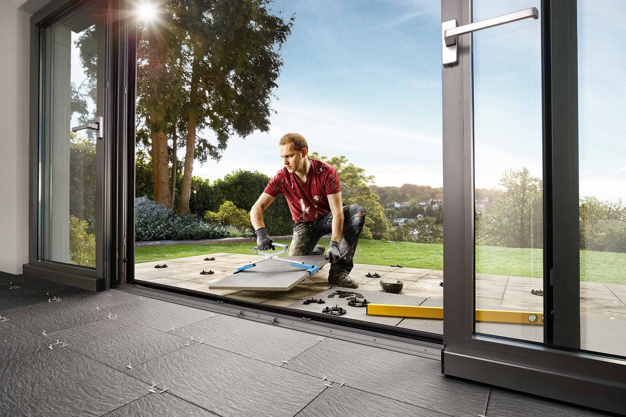 Der Plan? Weite schaffen. Um Dein Wohnzimmer optisch in Richtung Balkon oder Terrasse zu erweitern, verlegst Du am besten Feinsteinzeugfliesen im Innenbereich und Terrassenplatten mit derselben Optik für den Außenbereich ...mehr